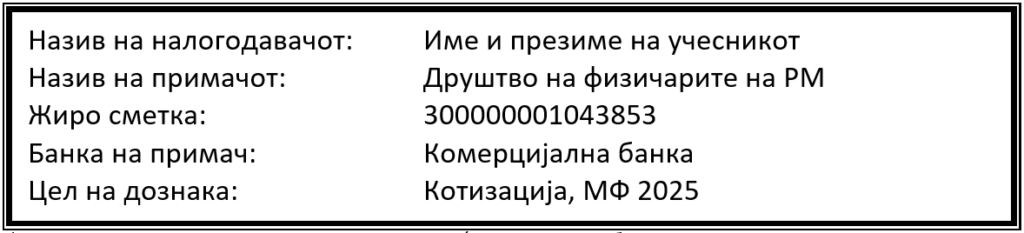 – 900 ден. за наставници кои не се членови на ДФРМ, уплата до 3 ноември 2025